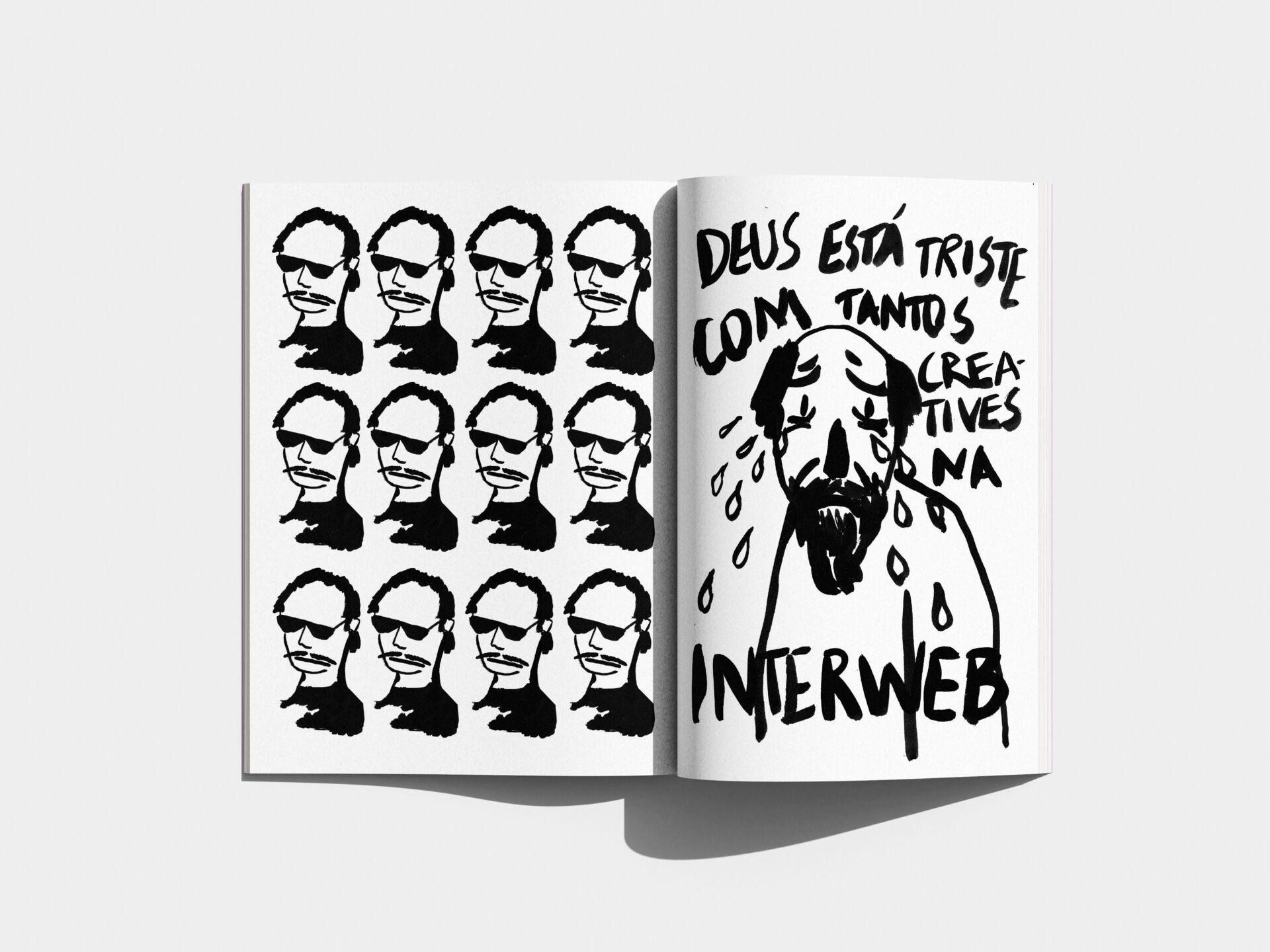 Uma zine autoral feita com desenhos em guache, manipulada digitalmente, impressa e costurada de forma artesanal. Um trabalho sobre trabalhadores da criatividade..... ninguém merece.