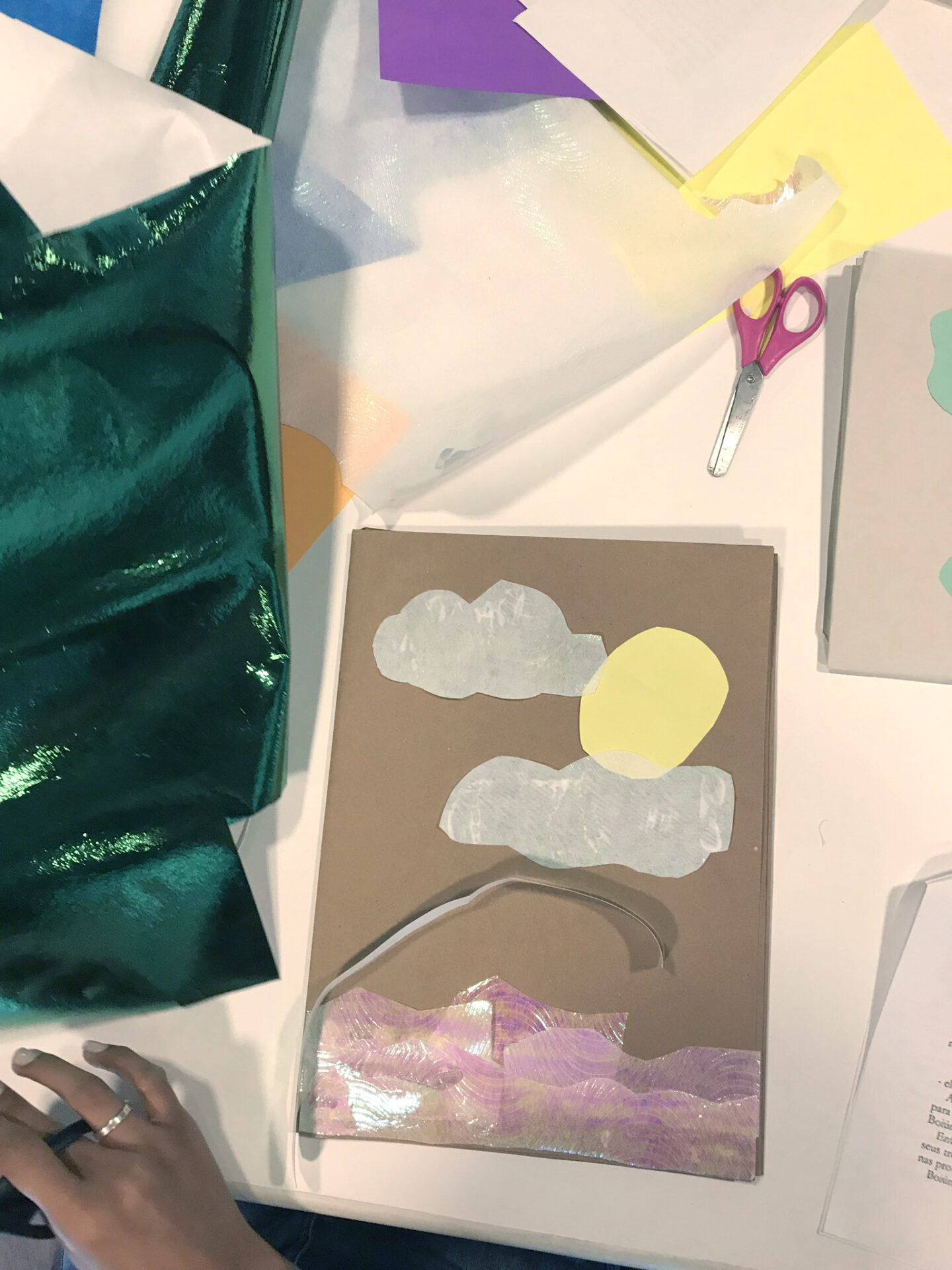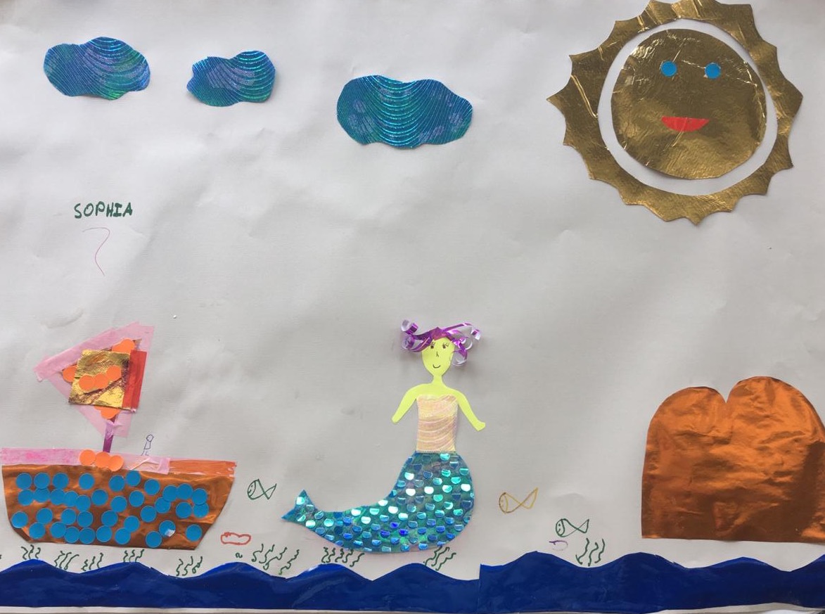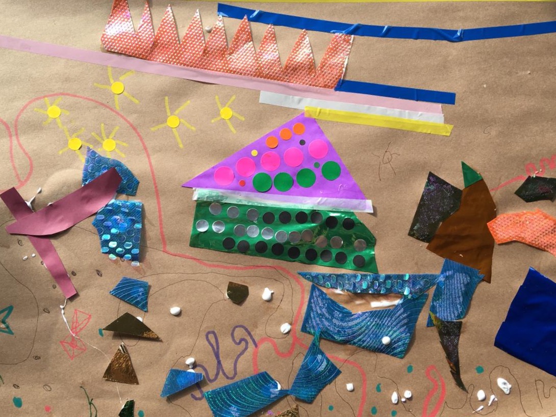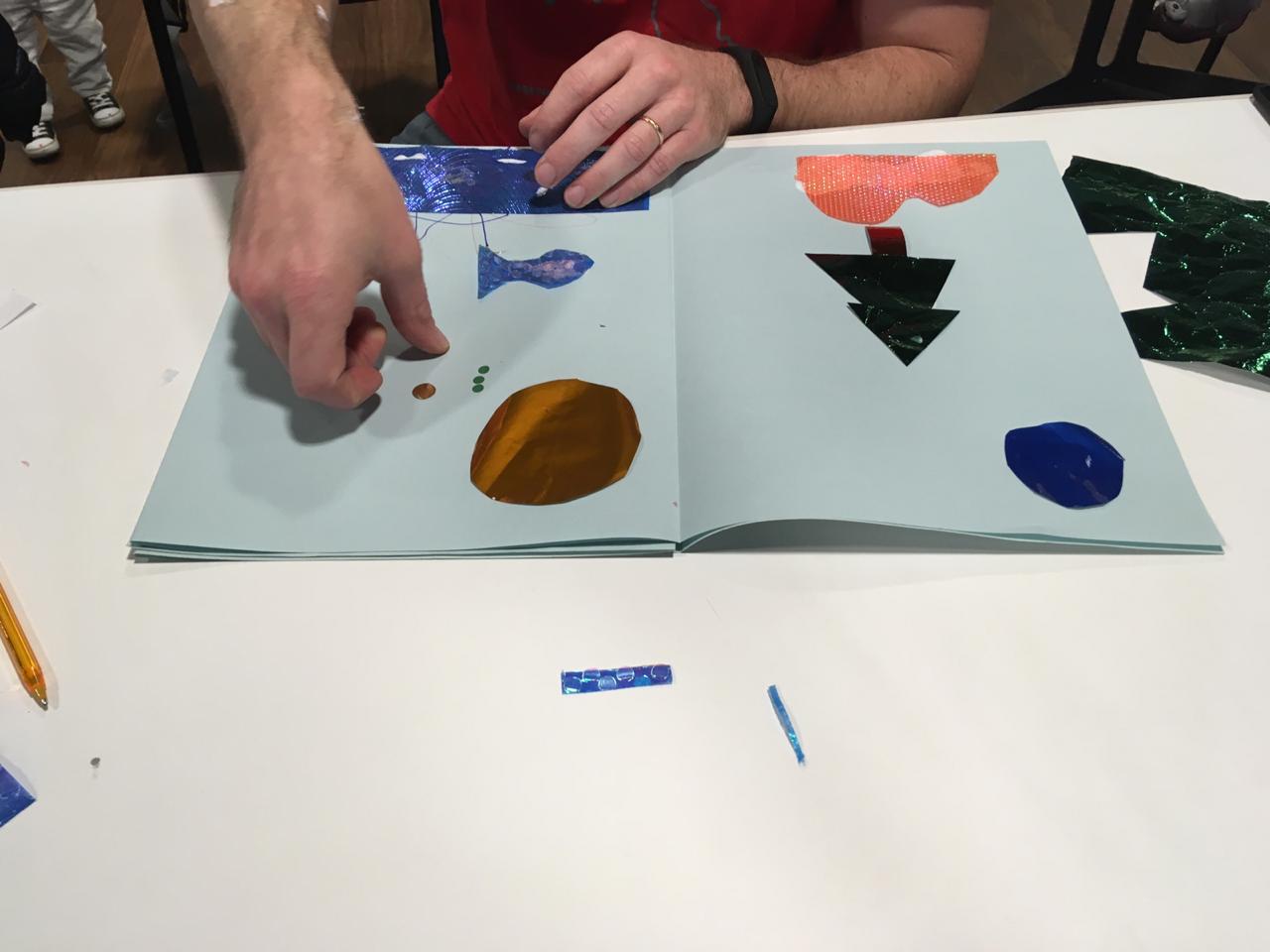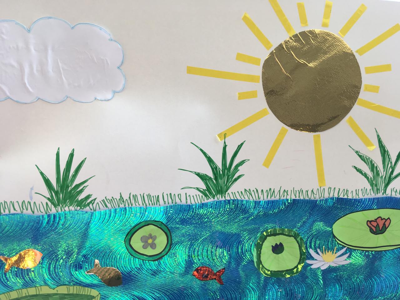Na oficina de cartaz, as crianças são orientadas a contar a história em uma só imagem.